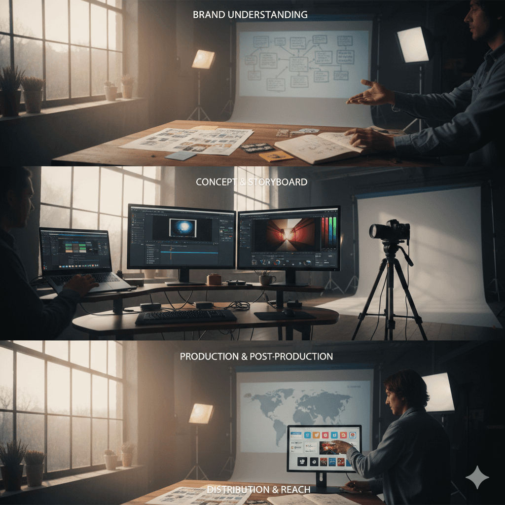 From lighting to framing, color grading to sound design — every visual element is crafted intentionally to match the story and elevate the message.